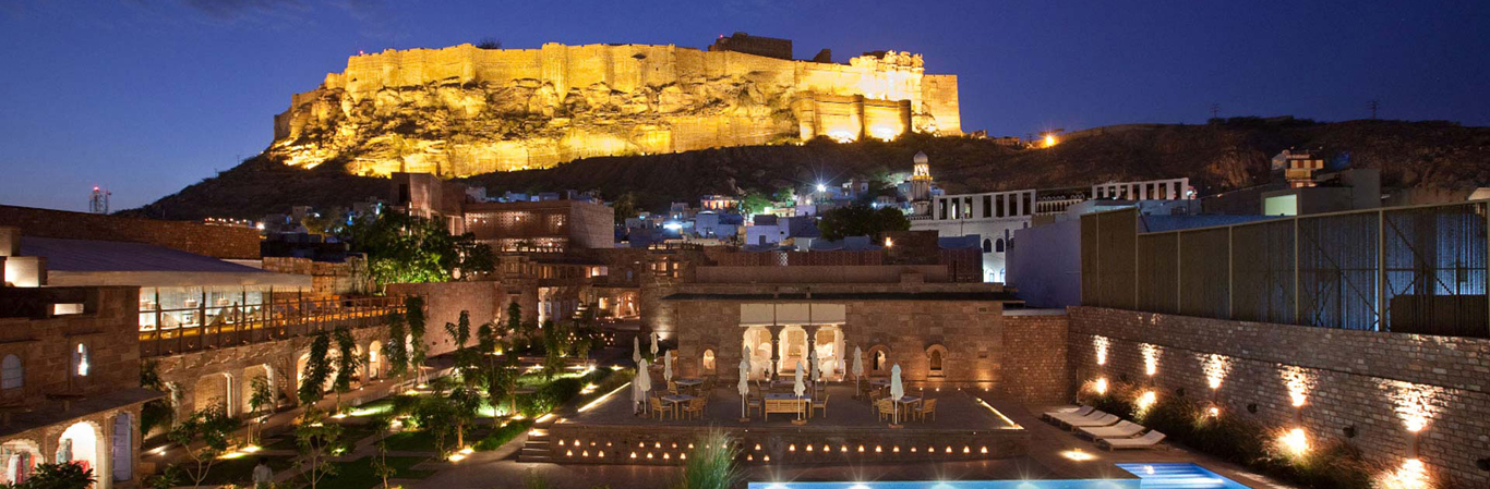 Heritage Suite: The most lavishly decorated suites are the three Heritage Suites, located in the original 18th-century Rajput residence. Whilst preserving the old-world charm of the mansion, these suites are equipped with all modern amenities to create a luxurious blend of historic and contemporary. The elevated platform in the front presents a stunning panorama of Mehrangarh Fort, while the back of the suite faces the splendidly landscaped hotel gardens.