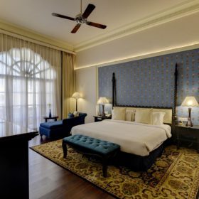 Premium Suites: Among the Jodhpur’s finest suites, this 84 Sq Mt luxurious guest residence has a sitting room with a LCD television set, surround-sound home theatre system, stylish desk and a bedroom with a king-sized bed and an indulgent pillow menu. A plush bathtub lords over the spacious bathroom, which has top of the line fittings, organic Forest Essential bath amenities and Egyptian cotton robes and towels.