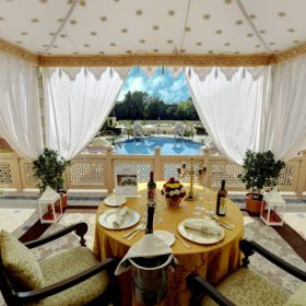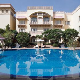 Spread over six acres of landscaped lawns and manicured gardens, Taj Hari Mahal, the5-star hotel in Jodhpur, celebrates the grandeur of Rajput and Mughal architecture, from its arch-shaped swimming pool, beguiling frescoes, latticed windows and flower-strewn water fountains to miniature artwork and jewel-toned furnishings inside the plush suites.