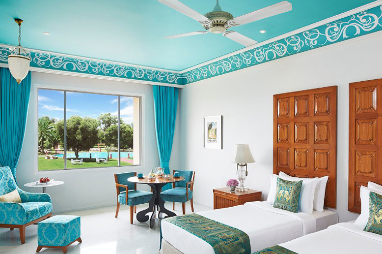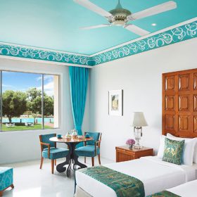 Luxury Room Garden View:Enjoy the rich handicrafts and heritage of Rajasthan in the turquoise and red Luxury Rooms, alongside the comfort of modern amenities. These rooms offer a spectrum of moods in their design elements.