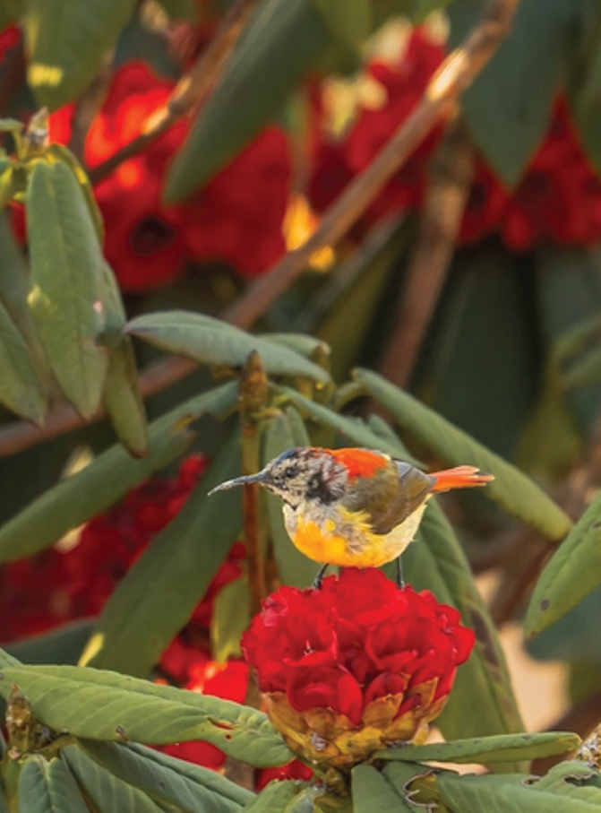 Morning Himalayan views, birding, breakfast.